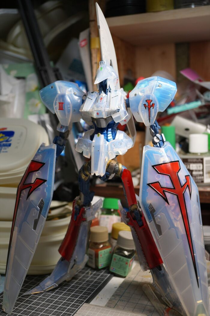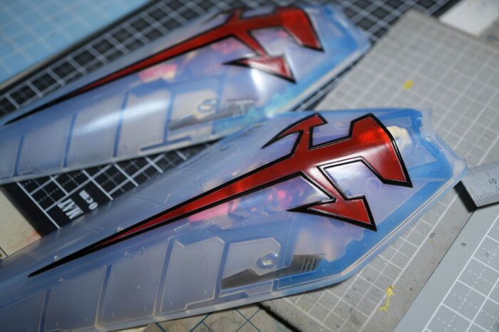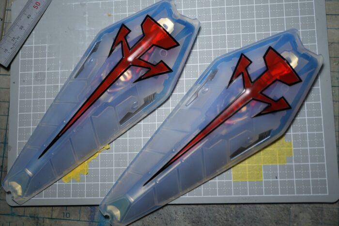 肩外装甲の裏側フレームも半透明色で。