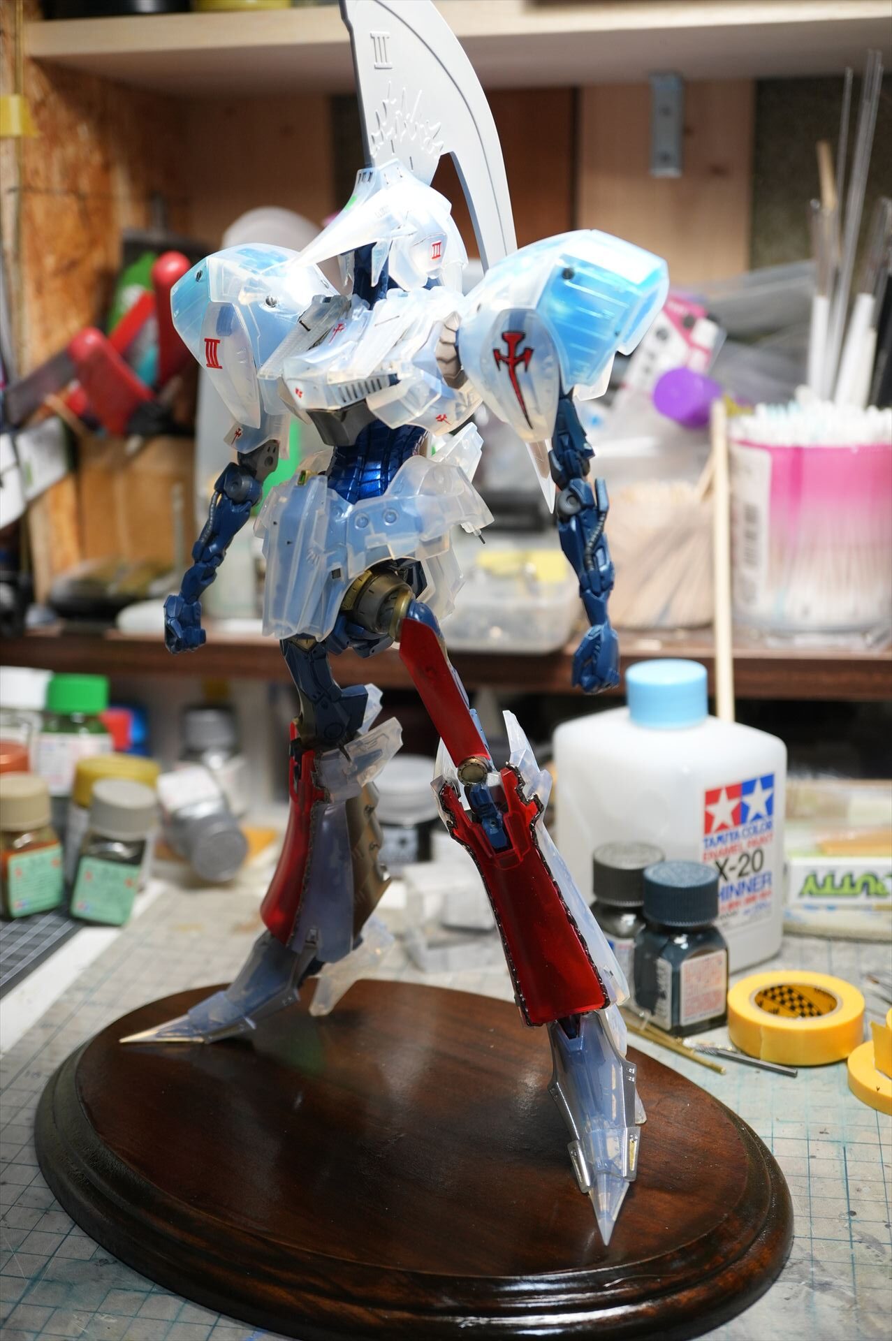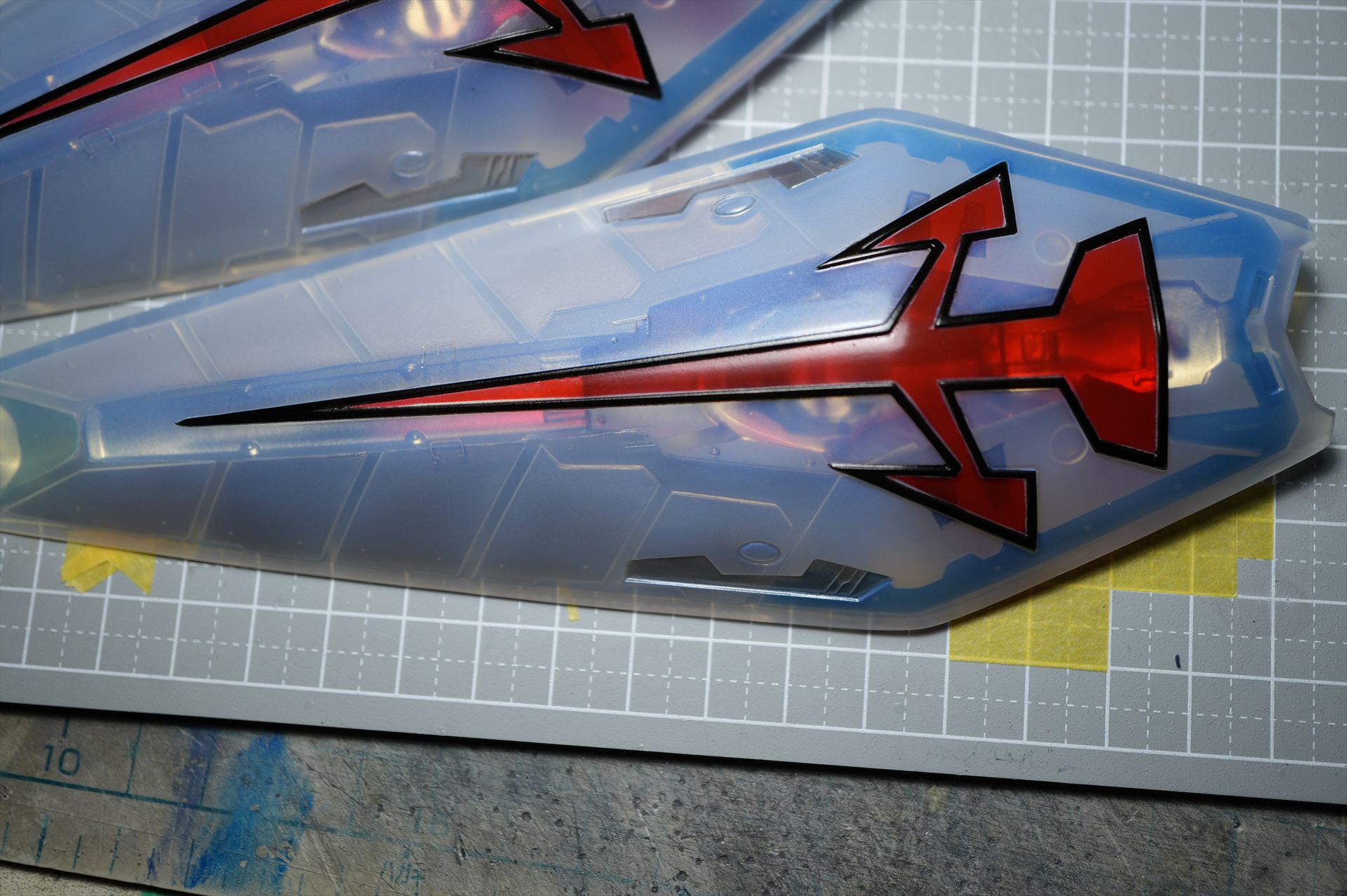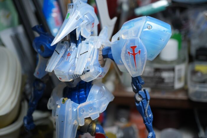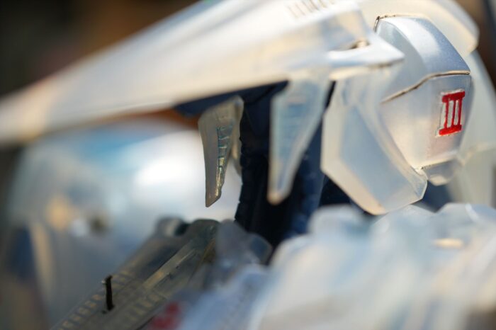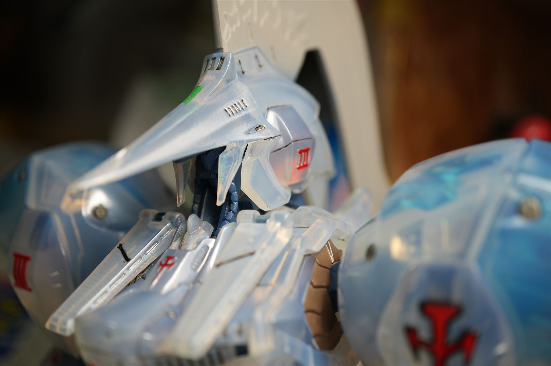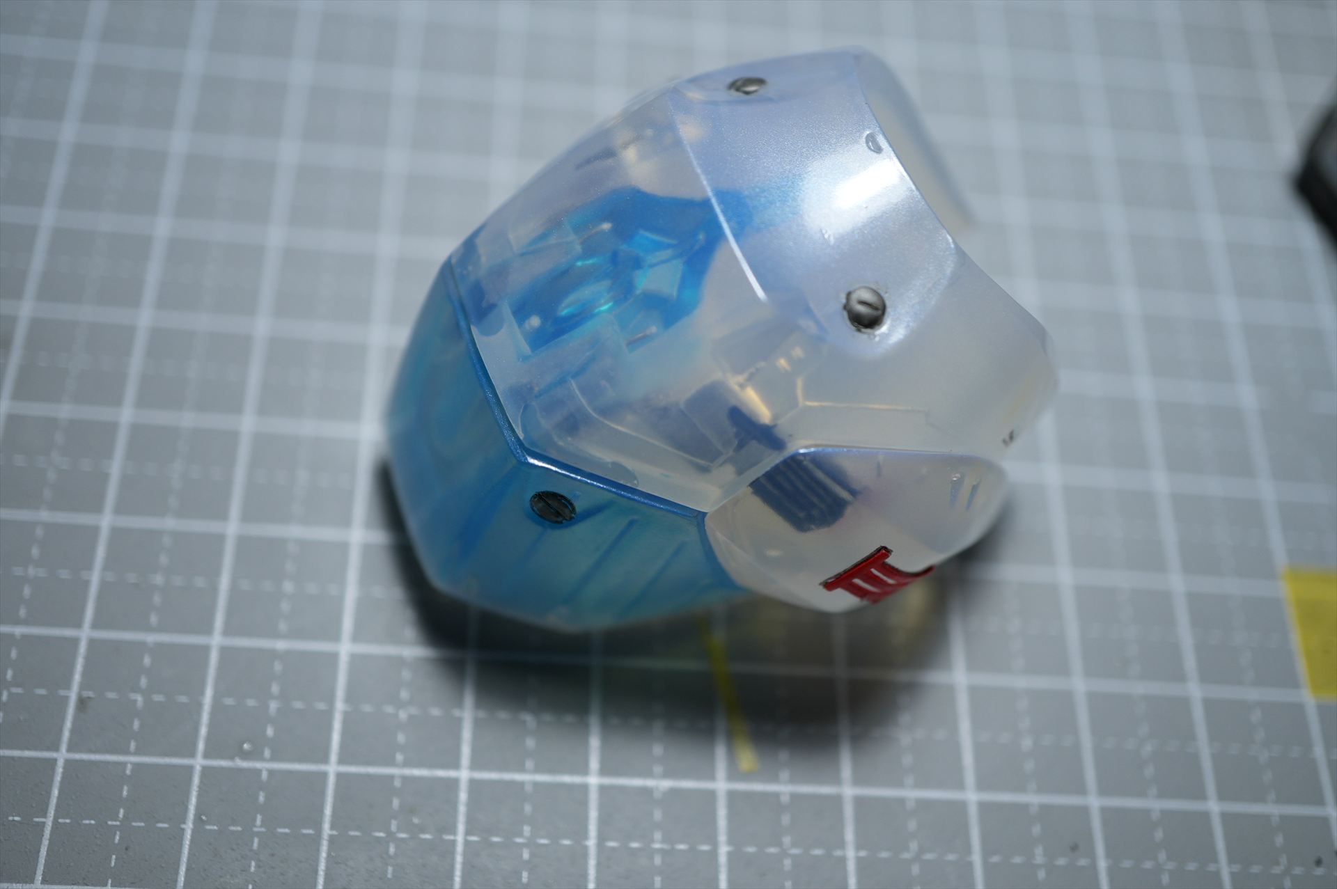 頭部外装甲、頬内側もクリヤーブルーで塗装した。
